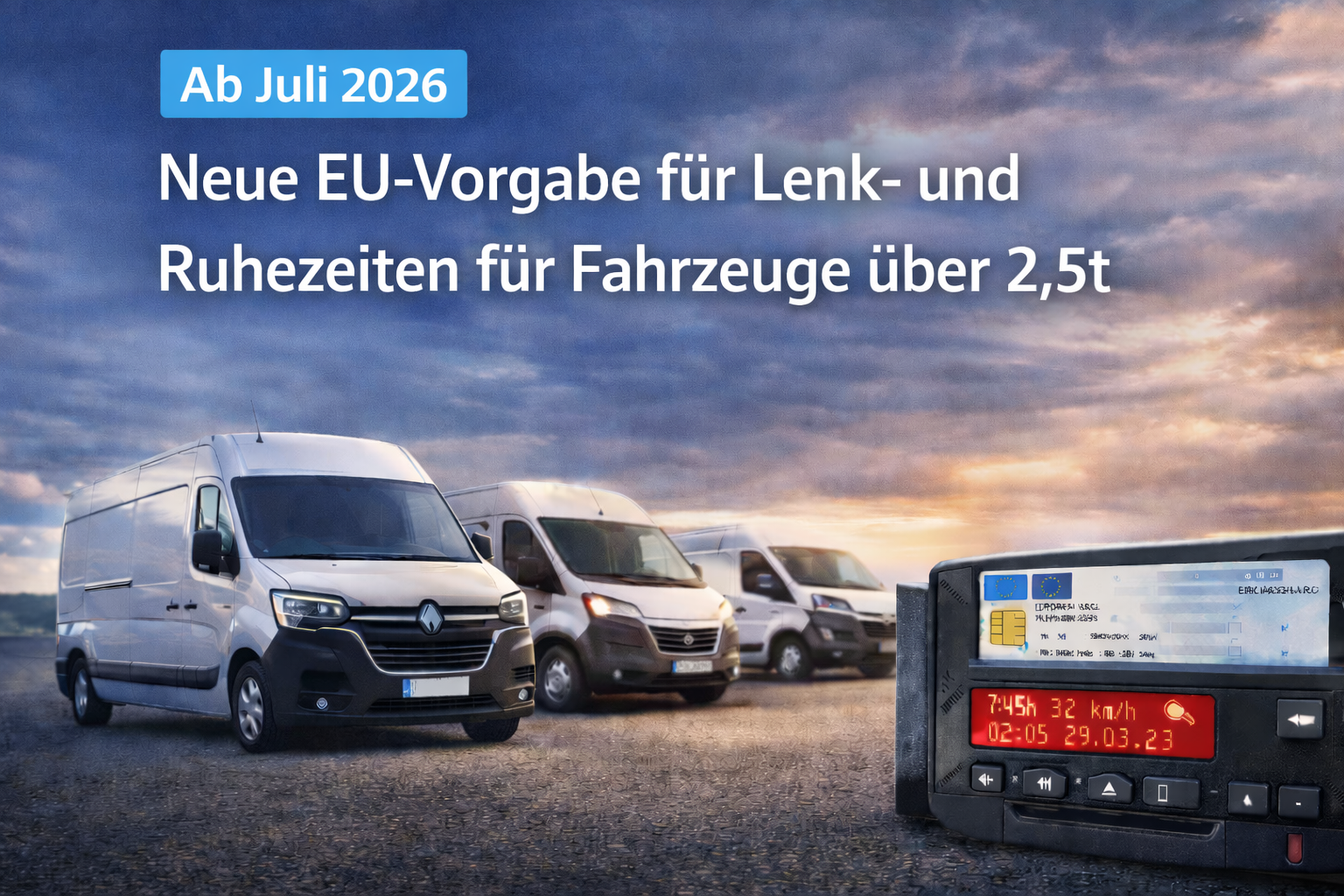 Die regulatorischen Rahmenbedingungen im europäischen Transportwesen verändern sich weiter. Ab Juli 2026 gelten die EU-Vorschriften zu Lenk- und Ruhezeiten auch für leichte Nutzfahrzeuge über 2,5 Tonnen, sofern sie im grenzüberschreitenden Verkehr eingesetzt werden.